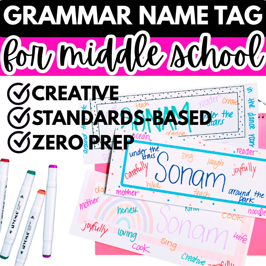 Aside from parts of speech, you can even ask students to use figurative language, compound sentences, symbolism, or any other literary concept to decorate their name tag. The possibilities are endless.